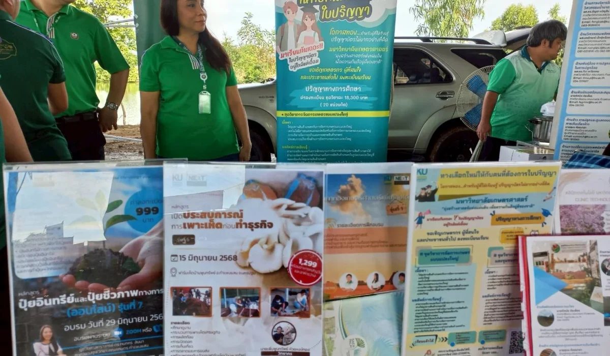 ภาพกิจกรรมจัดแสดงนิทรรศการและนำเสนอผลิตภัณฑ์ ผลงานวิจัยของมหาวิทยาลัยเกษตรศาสตร์ ในโครงการคลินิกเกษตรเคลื่อนที่ ในวันศุกร์ที่ 23 พฤษภาคม 2568