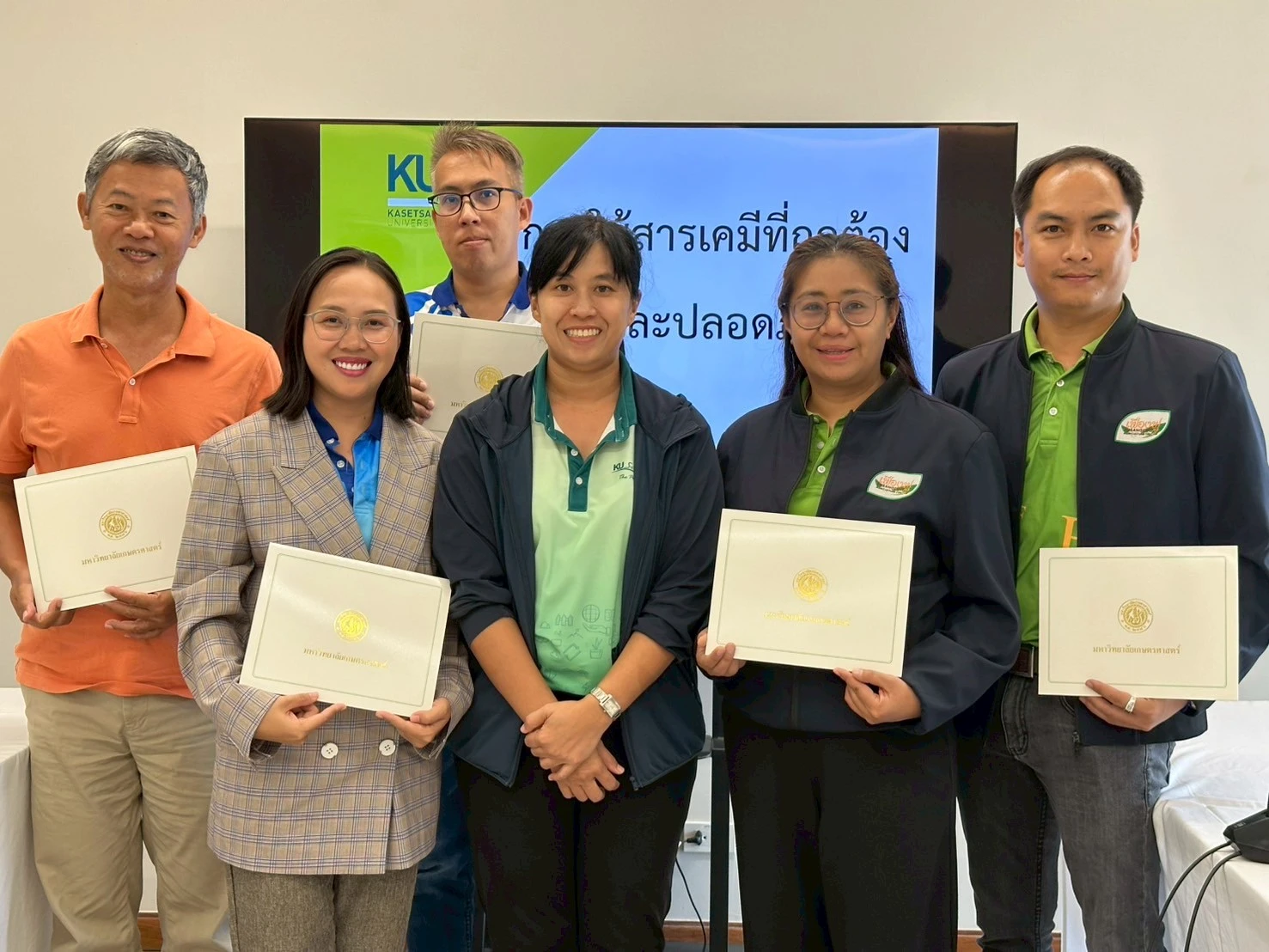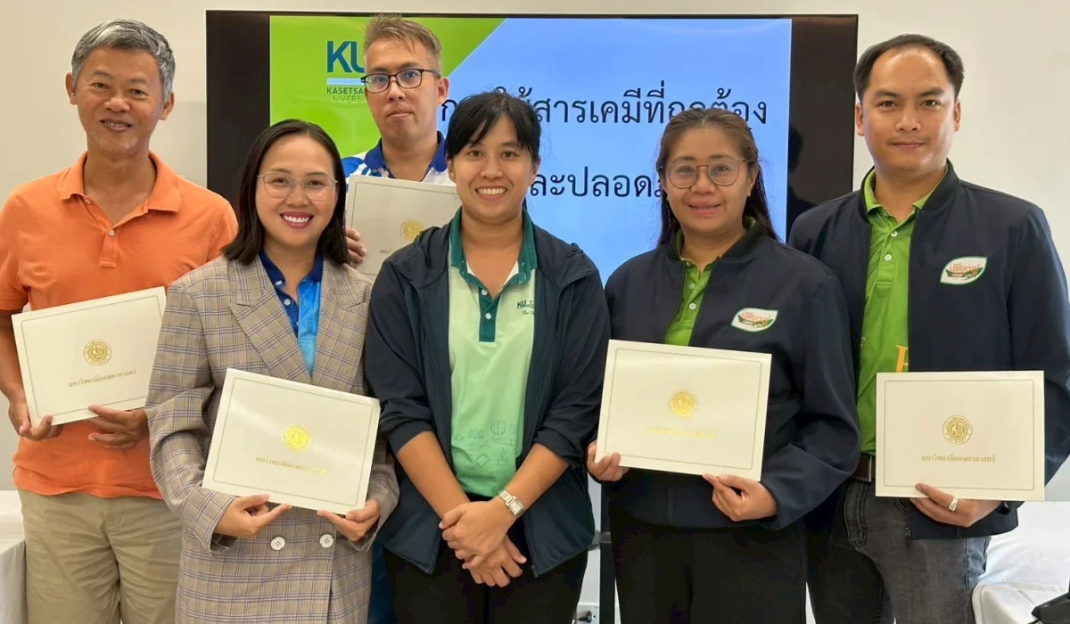 สำนักส่งเสริมและฝึกอบรม กำแพงแสน โดยโครงการ “NExT Academy” ร่วมกับ คณะเกษตร กำแพงแสน มหาวิทยาลัยเกษตรศาสตร์ วิทยาเขตกำแพงแสน จัดฝึกอบรมหลักสูตร “การใช้สารเคมีที่ถูกต้องและปลอดภัย” รุ่นที่ 5 ให้กับผู้สนใจทั่วไป จำนวน 5 คน ระหว่างวันที่ 20-21 กันยายน 2568 โดยมีวัตถุประสงค์เพื่อให้ผู้เข้ารับการฝึกอบรม มีความรู้ความเข้าใจเกี่ยวกับสารเคมีและวัตถุอันตราย สามารถจำแนกสารเคมีวัตถุอันตรายในการจัดเก็บ การขนส่ง การเคลื่อนย้ายได้อย่างมีประสิทธิภาพ เลือกใช้อุปกรณ์ป้องกันส่วนบุคคลเมื่อต้องปฏิบัติงานกับสารเคมี วัตถุอันตรายได้อย่างเหมาะสมปลอดภัย และนำองค์ความรู้ที่ได้รับไปประยุกต์ใช้งานได้อย่างเหมาะสม ทั้งนี้ได้รับเกียรติจาก ดร.ดวงทิพย์ กันฐา ภาควิชากีฏวิทยา คณะเกษตร กำแพงแสน ดร.พิสุทธิ์ เขียวมณี ภาควิชาโรคพืช คณะเกษตร กำแพงแสน นางวันวิสาข์ วัฒนะพันธ์ศักดิ์ นักวิจัย ชำนาญการ ศูนย์วิจัยและบริการวิชาการ คณะเกษตร กำแพงแสน และนายทศพล วัฒนะพันธ์ศักดิ์ นักสาธารณสุข ชำนาญการ สำนักงานสาธารณสุขอำเภอบางเลน ในการเป็นวิทยากรครั้งนี้