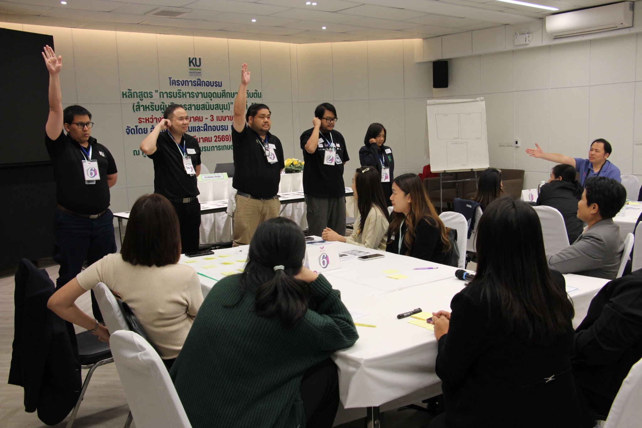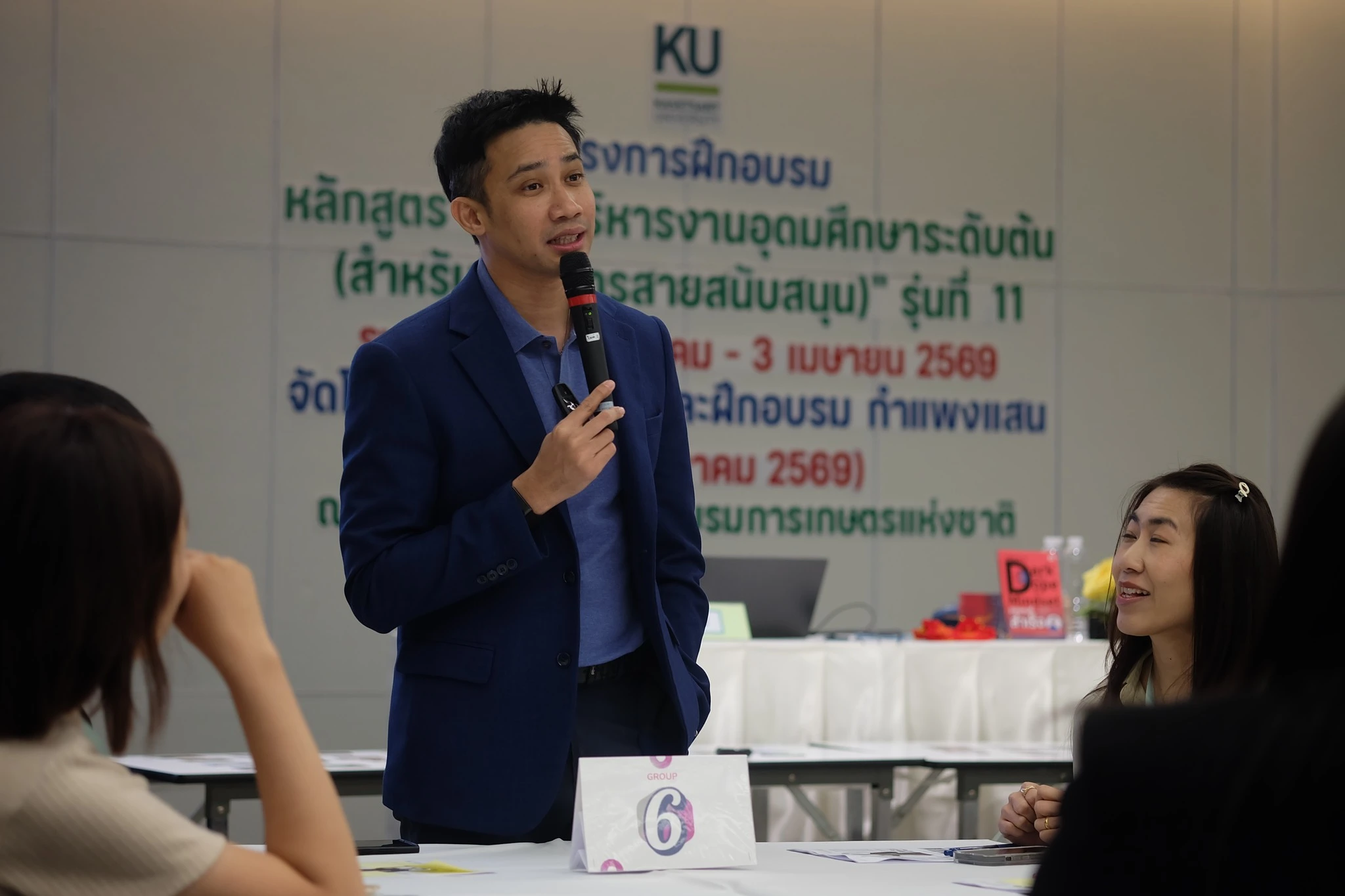สำนักส่งเสริมและฝึกอบรม กำแพงแสน โดย NExT-Academy จัดฝึกอบรมหลักสูตร “การบริหารงานอุดมศึกษาระดับต้น (สำหรับผู้บริหารสายสนับสนุน)” รุ่นที่ 11 ในรูปแบบไฮบริด (onsite & online) ระหว่างวันที่ 9 มีนาคม – 3 เมษายน 2569 โดยในวันจันทร์ที่ 9 มีนาคม 2569 ดร.กันยารัตน์ เชี่ยวเวช หัวหน้าโครงการฯ ได้ปฐมนิเทศแนะนำหลักสูตร และ ผศ.ดร.ชัชมาศ กาญจนอุดมการ รองผู้อำนวยการสำนักส่งเสริมและฝึกอบรม กำแพงแสน ได้กล่าวต้อนรับผู้เข้ารับการฝึกอบรม และอาจารย์มงคล กรัตะนุตถะ ผู้เชี่ยวชาญด้านการพัฒนาทัศนคติเชิงบวกและการพัฒนาทักษะหัวหน้างาน ให้เกียรติเป็นวิทยากรในกิจกรรม “กลุ่มสัมพันธ์และละลายพฤติกรรม และกิจกรรมสร้างทีมงานและพัฒนาเครือข่าย” สำหรับหลักสูตรนี้มีผู้อบรมจำนวน 51 คน จาก 8 มหาวิทยาลัย ได้แก่ มหาวิทยาลัยเกษตรศาสตร์ มหาวิทยาลัยเทคโนโลยีราชมงคลธัญบุรี มหาวิทยาลัยเทคโนโลยีราชมงคลล้านนา มหาวิทยาลัยนราธิวาสราชนครินทร์ มหาวิทยาลัยนเรศวร มหาวิทยาลัยราชภัฏนครสวรรค์ มหาวิทยาลัยราชภัฏอุดรธานี และมหาวิทยาลัยสงขลานครินทร์