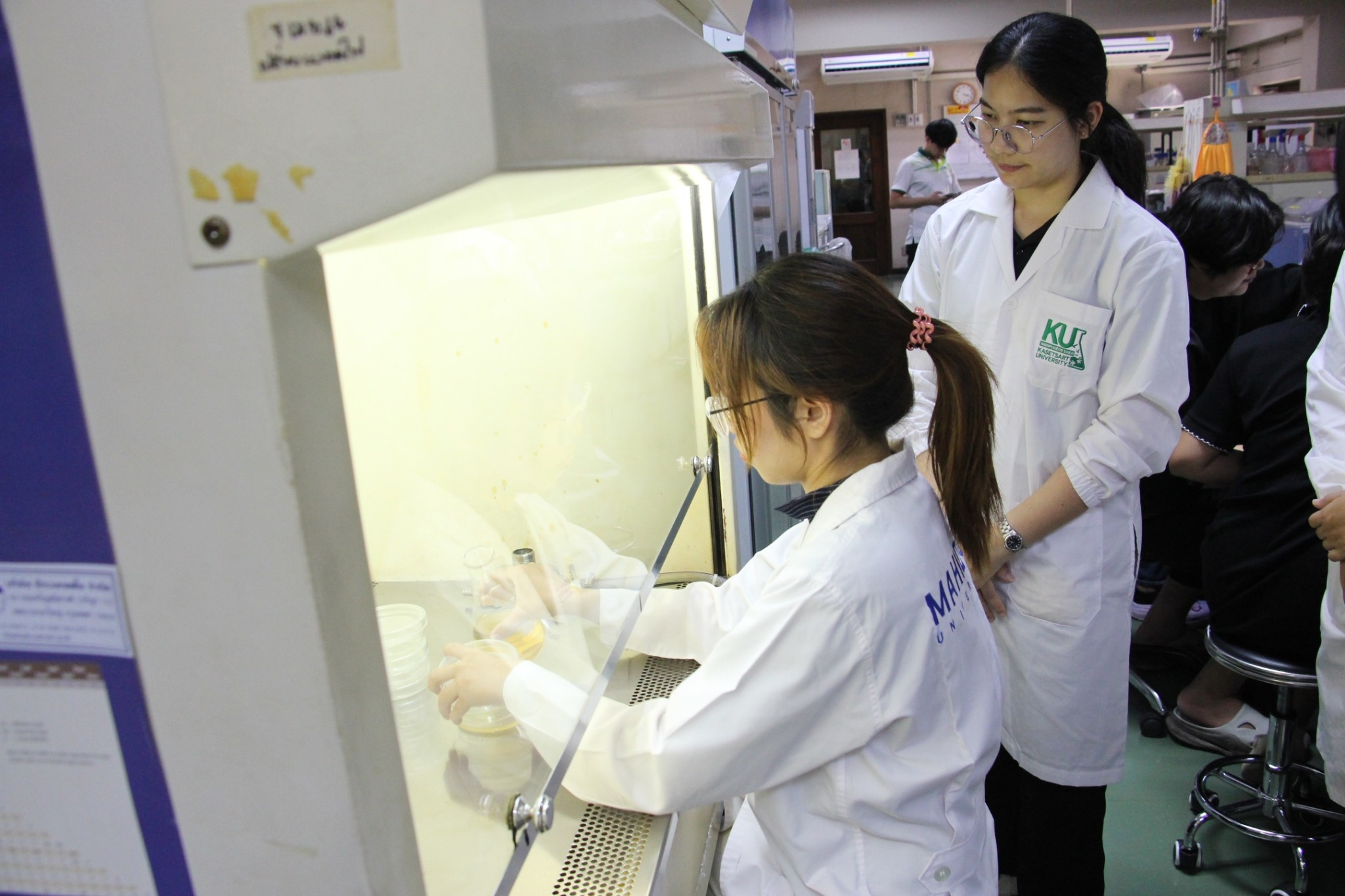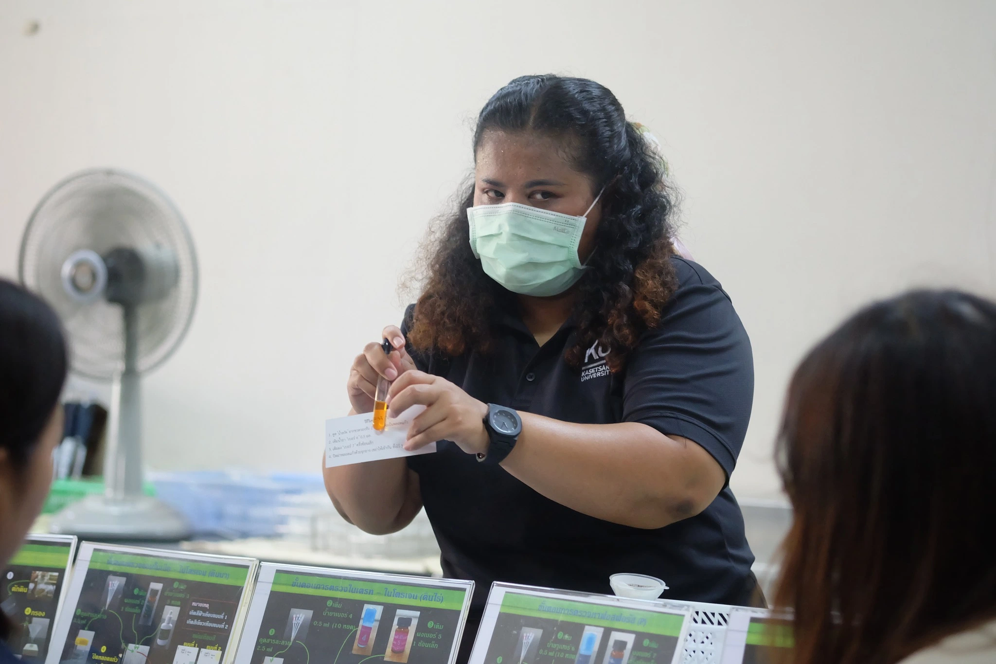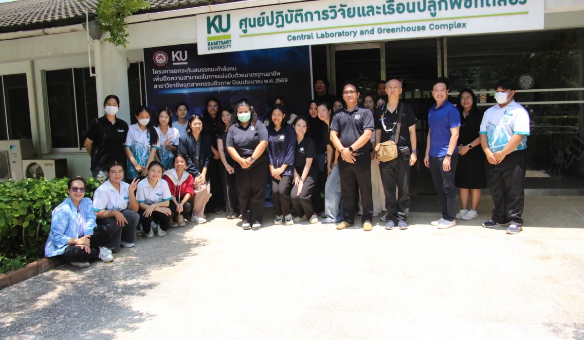 สำนักส่งเสริมและฝึกอบรม กำแพงแสน ร่วมกับ สถาบันคุณวุฒิวิชาชีพ (องค์การมหาชน) จัดฝึกอบรมโครงการยกระดับสมรรถนะกำลังคนเพิ่มขีดความสามารถในการแข่งขันด้วยมาตรฐานอาชีพ สาขาวิชาชีพอุตสาหกรรมชีวภาพ ปีงบประมาณ พ.ศ.2569 หลักสูตร การพัฒนาอาชีพนักเทคโนโลยีชีวภาพ ระดับ 3 ในรูปแบบ Hybrid learning ระหว่างวันที่ 9 กุมภาพันธ์ -15 มีนาคม 2569 ให้แก่ผู้ที่อยู่ในสายงานเทคโนโลยีชีวภาพ เพื่อเตรียมความพร้อมเข้าสู่การเป็นนักเทคโนโลยีชีวภาพมืออาชีพ จำนวน 60 คน โดยในวันที่ 27 มีนาคม 2569 ในรายวิชา “การตรวจสอบสมบัติทางกายภาพตัวอย่างเบื้องต้น” ได้รับเกียรติจาก ดร.ชาลินี คงสุด หน่วยวิเคราะห์วิจัยดิน พืชและวัสดุเกษตร ศูนย์ปฏิบัติการวิจัยและเรือนปลูกพืชทดลอง คณะเกษตร กำแพงแสน เป็นวิทยากร และรายวิชา “การปฏิบัติงานเบื้องต้นด้านเทคโนโลยีชีวภาพ” ได้รับเกียรติจาก ดร.ชมนาถ เกิดคง และนางสาวรัตติยา ผดุงผล หน่วยจุลชีววิทยาประยุกต์ ศูนย์ปฏิบัติการวิจัยและเรือนปลูกพืชทดลอง คณะเกษตร กำแพงแสน เป็นวิทยากร